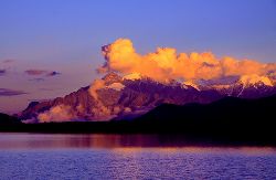 云在天上飄動,影子在大地上掠過,碧綠的草地在云流的映襯下五彩斑斕,猶如一塊巨大的迷彩布,把草地打扮得分外妖嬈。云不墨守成規(guī),每時每刻都有新創(chuàng)意;云有層次的美,有型有款。時刻花樣百出、千奇萬巧的云景,常使人遐想聯(lián)翩。我愛高原的云,因為亦真亦幻的云仿佛成了心靈遠(yuǎn)游的載體,寄托著人們的留戀與追求。