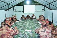 駐訓(xùn)演習(xí)期間,無論是徒步行軍還是摩托化機(jī)動(dòng),無論是軍事訓(xùn)練還是文體活動(dòng),無論是武裝越野還是野戰(zhàn)生存,軍分區(qū)領(lǐng)導(dǎo)自始至終同官兵同吃同住同訓(xùn)練,把蘊(yùn)藏在官兵中的創(chuàng)造活力激發(fā)到完成重大任務(wù)中來,鼓舞了戰(zhàn)斗士氣,礪練了戰(zhàn)斗作風(fēng),培育了戰(zhàn)斗精神。