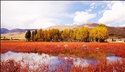 蔚藍(lán)蔚藍(lán)的天空飄著幾朵淡淡的白云,天空是那么近,仿佛你伸手可觸。一出縣城,你可以看到世界上海拔最高、面積最大的人造青楊林,這兒的海拔是三千七百多米,農(nóng)業(yè)學(xué)家認(rèn)為海拔4000米是不能生長(zhǎng)農(nóng)作物的,可是這里照樣是郁郁蔥蔥,到處是風(fēng)里閃爍的青楊樹(shù),映著灘寬水淺的小河,炊煙裊裊的藏房,潔白豐滿的佛塔,還有色拉村的晨霧,好一派迷人的美景……