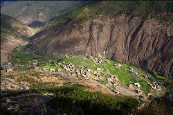 在山頂,放眼望去,群山都籠罩在一片霧氣中,朦朦朧朧的,像披上了一層神秘的面紗,往山下看去,霧氣中隱約可見(jiàn)一個(gè)美麗的小村莊,這就是那傳說(shuō)中沒(méi)有憂傷,沒(méi)有困苦的香格里拉。