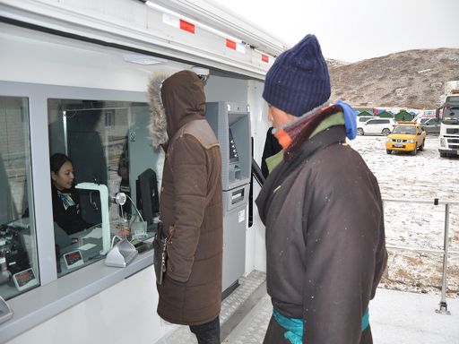 該行應急金融服務突擊隊于24日上午8點挺進受災最重的塔公鎮(zhèn)袓慶小學,立即搭建服務設備開展金融服務,該行也是第一支到達該區(qū)域的金融服務隊。地震發(fā)生后一周來,在極端惡劣天氣條件下,服務隊柜員仍堅持按照網點規(guī)范化標準為客戶提供優(yōu)質服務,兩名柜員在寒冷中堅持工作,堅持用普通話與客戶交流,服務隊還組織懂藏語的員工參與服務。由于高海拔地區(qū)冰雪天氣造成柜臺和自助取款機網速反應慢,造成辦理業(yè)務時間較長,該行領導親自上陣,帶領員工耐心與客戶交流寒喧,了解災情,安撫客戶,緩解了客戶等待的辛苦。雖然天氣惡劣、條件艱苦,但農行員工的優(yōu)質服務贏得了客戶贊譽。一名參與救援的武警官兵從自助取款機取了3000元現(xiàn)金,對農行的服務豎起大拇指表示稱贊。同時,該行服務隊對災區(qū)客戶實行免費服務。一位安置點板房援建工程部的工作人員拿著剛取出的錢高興地說:“你們不僅到災區(qū)快,成都的卡取錢還不收手續(xù)費,真的感謝你們了,解了我的燃眉之急!”