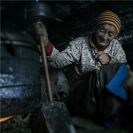 我聽完老人的講述,心頭很震憾。心想我一定用手中的相機(jī)好好地記錄下手持轉(zhuǎn)經(jīng)筒的人們。
