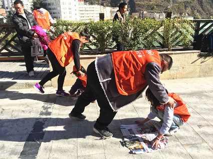 在瀘定橋上,小記者們向游客講述當(dāng)年“紅軍飛奪瀘定橋”的英雄壯舉。在瀘定橋河西長廊,帶隊(duì)老師組織小記者和家長們進(jìn)行了“向目標(biāo)前進(jìn)”的親子互動(dòng)游戲,游戲?qū)议L和孩子的默契程度進(jìn)行了考驗(yàn),鍛煉了他們的智力和體力。在瀘定紅軍紀(jì)念館廣場上,小記者們按照帶隊(duì)老師的要求進(jìn)行拼接游戲,完成“小小紅軍支援前線”,獲勝的小組獲得了獎(jiǎng)品。游戲結(jié)束后,小記者們在講解人員的帶領(lǐng)下參觀了瀘定紅軍紀(jì)念館,了解了許多相關(guān)的歷史知識(shí)。同時(shí),小記者們以組為單位開展了“講紅色故事”活動(dòng),講解內(nèi)容涉及瀘定橋的修建、瀘定橋勇士英勇犧牲的故事等,讓小記者進(jìn)一步了解到了瀘定縣的紅色歷史文化。