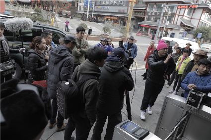 在瀘定縣城,陳軍生帶著陶琳和驢友們,站在熱鬧的紀(jì)念廣場(chǎng)上。劉夏正在給游客們介紹瀘定橋23烈士的雕像。在瀘定橋頭,陶琳帶領(lǐng)著游客們?cè)跇蛏险障?,充滿著歡快的氛圍。經(jīng)過(guò)一段時(shí)間的游覽,當(dāng)天的游覽結(jié)束了。劉夏和陶琳一起舉起牌子,叫喊著:“軍生客棧,帶您暢游牛背山、嵐安古鎮(zhèn),以及瀘定橋紅色旅游專線!”的宣傳口號(hào),引來(lái)了許多游客。