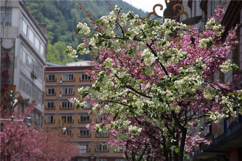 當(dāng)春天遇見最美的櫻花時(shí),驚艷了整個(gè)康定。櫻花與身邊人都將成為春日里的浪漫風(fēng)景。櫻花之美,美在氣勢,櫻花紛飛,夢幻唯美。每年4月中旬,康定城北門的櫻花綻放后,人們像是約好了一樣聚集到這里,共赴這一場甜美盛宴。這一路繁花似錦,人們穿過枝椏花正盛的櫻花林,穿過粉色海洋,徑直奔向一個(gè)浪漫的童話,一路櫻花飄散,一路粉光燦爛。櫻花絢麗繽紛、陸續(xù)綻放,若恰逢一陣春風(fēng)經(jīng)過,櫻花瓣隨風(fēng)舞動(dòng),猶如紛落的雪花,空氣中浮動(dòng)著櫻花特有的淡淡香氣,令人不禁懷疑自己置身夢境?!翱刀ǖ拇禾靵淼靡硪恍?,綻放的櫻花,滿街的花草,折多河畔楊柳依依,康定的春天無比驚艷,醉了游人。”周先生一邊拍照,一邊感嘆,他在康定生活了40多年,20年前的康定,可以說找不到像樣的花草樹木,進(jìn)入新時(shí)代,康定城市變美了,城市綠化走在了前面,城市的美譽(yù)度舒適度不斷提升??刀ㄖ海荷珴M園,姹紫嫣紅,風(fēng)光旖旎。