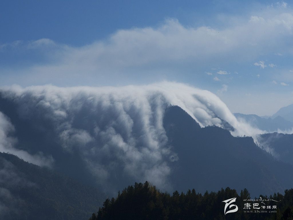 牛背山最為變幻無(wú)窮的,當(dāng)屬云海。從山頂向下望去,四周云海茫茫,時(shí)而舒緩,時(shí)而洶涌,潮起潮落。當(dāng)云海移至深谷處,會(huì)因?yàn)榫薮蟮穆洳疃纬善俨荚疲骑w瀑?gòu)奶於?,氣?shì)磅礴,蔚為壯觀。“寵辱不驚,閑看庭前花開(kāi)花落;去留無(wú)意,漫隨天外云卷云舒”。云卷云舒的景象,大概只有在牛背山才能被演繹得如此淋漓盡致吧。難怪有人這樣描述牛背山:“泥巴山、瓦屋山、峨眉山、夾金山、四姑娘山和二郎山在前, 貢嘎雪山在側(cè), 大渡河大峽谷在后, 幾乎天府之國(guó)的所有名山峻嶺在此時(shí)都變成了玲瓏盆景。而翻滾的云霧之下, 群山丘陵逐級(jí)降低, 緩緩融入稻浪翻滾的天府平原。”