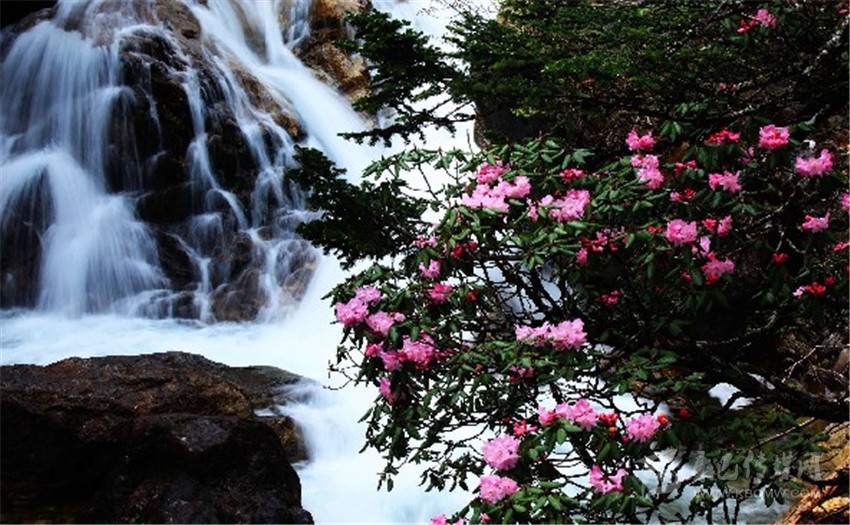 木格措的杜鵑峽最著名的當(dāng)屬四五月份漫山遍野開的高山杜鵑了。一團(tuán)團(tuán),一簇簇,滿山是花的世界,滿峽是花的海洋,她匯聚了杜鵑花族中68個(gè)品種,從4月中旬先后開放至7月,花期長達(dá)4個(gè)月。