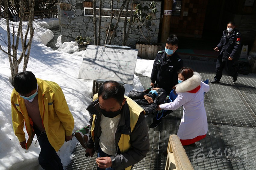 采訪期間,一場應急演練讓記者見證了海螺溝景區(qū)疫情應急處置的速度:醫(yī)生和民警們配合默契,醫(yī)生立即對疑似患者進行輸氧,而后和民警一起用擔架將患者送進位于索道站旁邊的隔離室,整個過程僅幾分鐘。海螺溝景區(qū)管理局營銷處負責人告訴記者,早在1月29日,海螺溝景區(qū)黨委就在研究部署復工復產(chǎn)的問題,派出相關(guān)負責人到周邊景區(qū)學習疫情防控和復工復產(chǎn)的經(jīng)驗做法。2月4日,海螺溝景區(qū)安排復工復產(chǎn)籌備推進會,要求工程項目和旅游企業(yè)全力做好防疫物資儲備、落實防控預案、對經(jīng)營場所進行消毒和環(huán)境衛(wèi)生大整治,要求大型酒店企業(yè)做好率先開工的準備,并多次開展疫情防控聯(lián)合演練,提高了景區(qū)疫情應急處置能力。