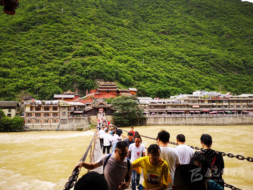 游客體驗瀘定鐵索橋。本網資料庫 圖