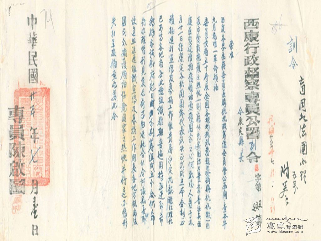 今天對這份“訓(xùn)令”有必要說明的是,一、當(dāng)時所謂的“中山臺”在西康省政府院內(nèi),在平時是作為升旗的地方;二,所說無名英雄紀(jì)念碑當(dāng)時修在何處待考,極有可能這里說要去奠基的這座紀(jì)念碑就是抗戰(zhàn)勝利后的“抗日陣亡將士紀(jì)念碑”;除了對市民的“訓(xùn)令”,對康定城中各寺廟也發(fā)出“訓(xùn)令”,其令內(nèi)容為“令:峨巴寺、撒家寺、奕龔寺、杜渣寺、宋喇嘛、大教場奪吉扎寺、南無寺、彌勒院、清真寺、圣喻廟:查7月7日(舊歷6月初10日),為抗戰(zhàn)建國紀(jì)念日,除舉行公祭陣亡將士及殉難國民,合行令仰遵照。于是日集合全體誦經(jīng)超度,虔誠祈禱是為至要。此令”。