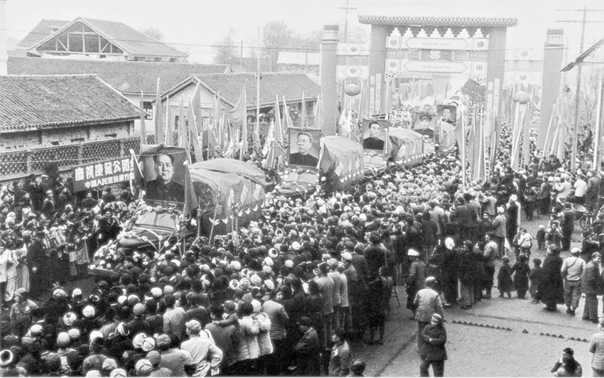 1954年12月25日,3000多名各族群眾在康定隆重集會,慶祝川藏公路(康藏公路)通車典禮現(xiàn)場。