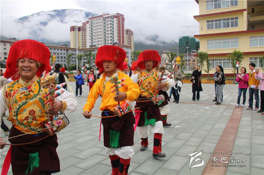 第二天,去巴塘縣人民小學看天籟童聲合唱團的演唱和孩子們的藏戲、熱巴舞等表演。在看得見山腰白云繚繞的美麗校園里,身著鮮艷民族服裝的藏族小朋友載歌載舞。童聲清澈,唱出《愛的心》《陽光的味道》;藏戲《降嘎啦》神秘古樸,如青稞酒般濃醇;歡騰的熱巴舞,篝火一樣熱烈!這些孩子,有的暑假剛?cè)グ闹扪莩龌貋?,讓世界看到了雪域高原文脈傳承生生不息。學校教學質(zhì)量一流,校長志瑪央宗介紹,上學全部免費(甘孜州已推行從幼兒園到高中15年免費教育),牧民的孩子都樂意來。學校主課之外“第二課堂”開設(shè)了藏文書法、藏戲、唐卡、二胡等12項興趣班,讓每個孩子的夢想都騰飛起來。