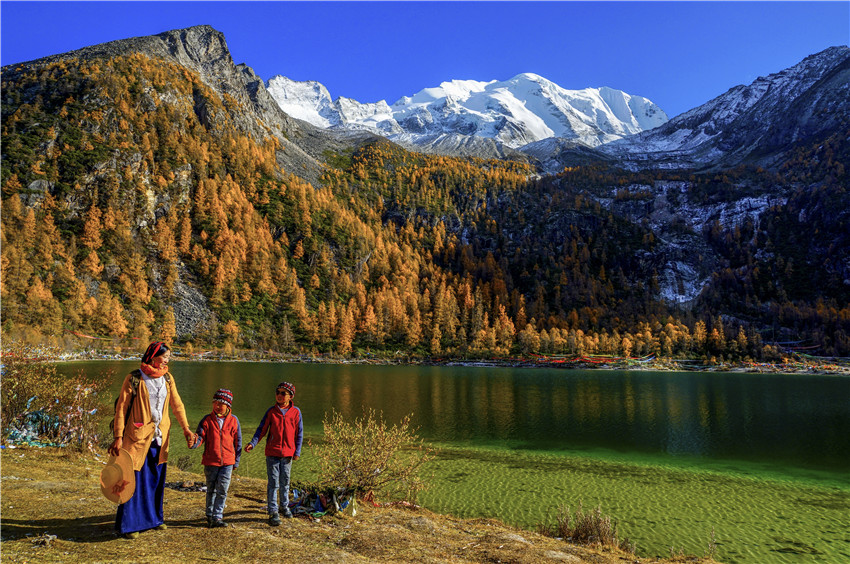 這里所說的跨越性是從時(shí)間和空間二維角度來講的。藏傳佛教中講輪回,在這種宗教觀念的影響下,宇宙之輪循環(huán)往復(fù),時(shí)間序列中過去、現(xiàn)在、未來永恒循環(huán),時(shí)間在空間中的綿延不會(huì)影響和區(qū)別生命的自在狀態(tài)。龍仁青小說在時(shí)間的跨越中體現(xiàn)藏文化的一脈傳承,《巴桑寺的C大調(diào)》里民國山灣巴桑寺的太陽“依舊蹲坐在西山頂上,有著持重老成的高僧大德一般的莊重和平靜”,《鳥巢》中當(dāng)下曲果小鎮(zhèn)的太陽“就像是一個(gè)深諳人生世事,有著豐富閱歷的老人,沉穩(wěn)而又粗然”。民國時(shí)期美國植物學(xué)家麥迪到巴桑寺拜謁神樹“拉香秀巴”,采集植物標(biāo)本;時(shí)光輪轉(zhuǎn)《綻放》里漢藏雙語寄宿小學(xué)的次洛在查美河岸草原尋找雪蓮和槐花,尋訪阿奶郎洛妮幽深的身世。上世紀(jì)70年代盛夏巴桑寺僧人久美身后姑娘的歌聲,幾十年后查美河岸次洛聽阿奶郎洛妮的吟唱。小說中時(shí)間跨度近一個(gè)世紀(jì),但藏族人對(duì)青藏高原富有山川地貌罕見的地理的情感與瑰麗的審美想象沒有變,對(duì)幽密深切滴愛情意蘊(yùn)的表達(dá)和書寫沒有變。