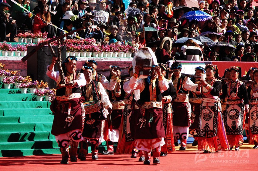 槍舞,嘉絨語中稱為“訥沖呷兒”,主要是在祭祀、集會、節(jié)日時表演的一種近似于戰(zhàn)術的舞蹈。在舞蹈中,舞者圍成一個圓圈,手持明火槍,明火槍,是最早的一種真正適于在戰(zhàn)場上為軍事目的使用的火槍。槍膛為一根圓柱形的鐵筒,筒口直徑為三厘米左右,在槍膛底部,有一個小圓孔伸出槍管,為導火管。如耳朵狀,因此也稱為槍耳,主要是用來點火的地方。圓筒固定在堅硬的木托頂端。這種輕火器或者說小型火炮使用的是形狀不規(guī)則的彈丸,即不大的實心彈,它緊貼大粒火藥制成的裝藥,借緊挨導火孔的火繩發(fā)射。