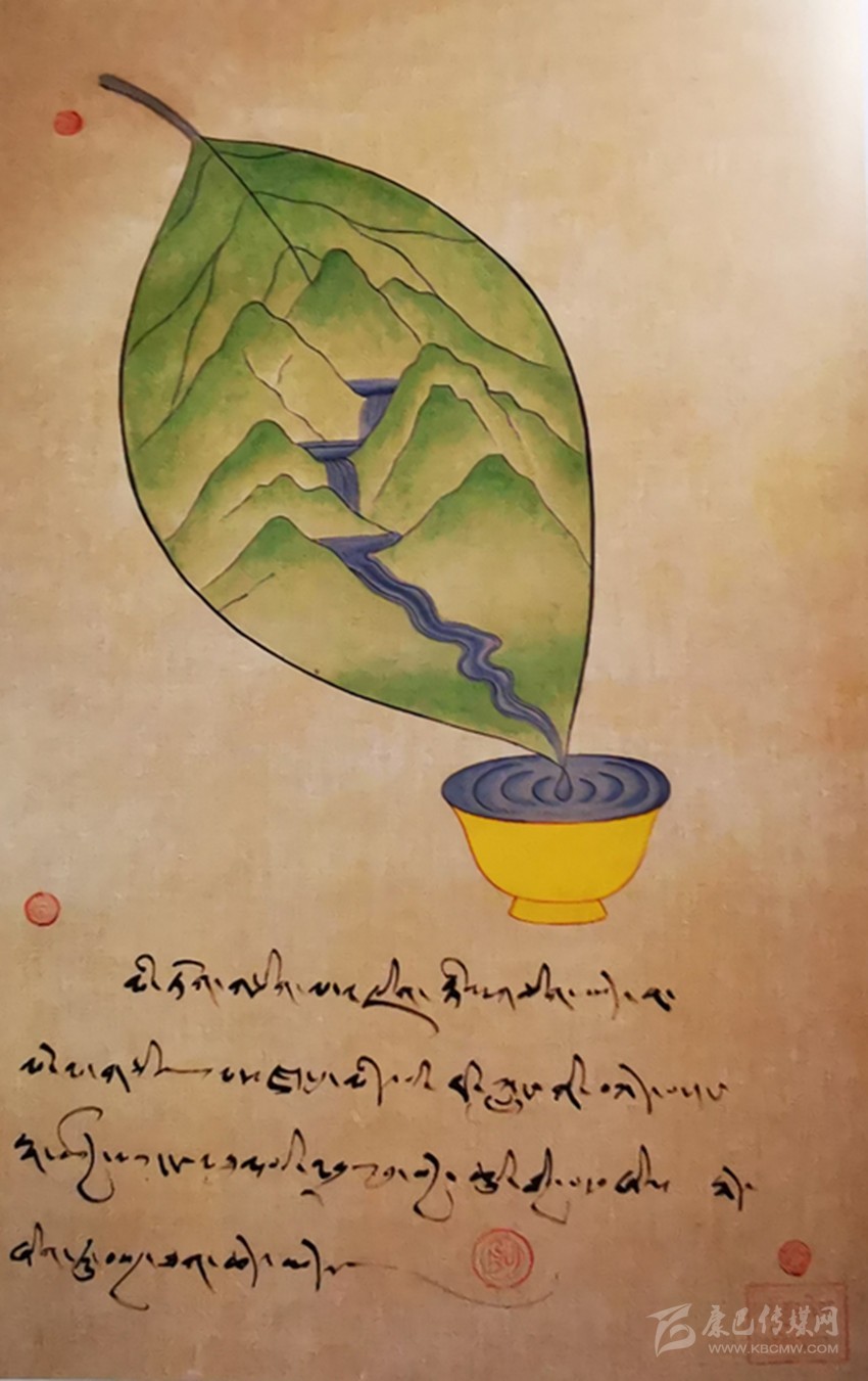 耷·瓊培介紹說:“在新概念唐卡中,慈悲、智慧、勇猛之力是通過一朵花、一片云、一條河、一捧沙來展現,每幅作品都有嶄新的理念、巧妙的構思、簡潔的構圖、抽象的符號、象征性的語言和裝飾化的風格,總體來說頗有清新之意。”