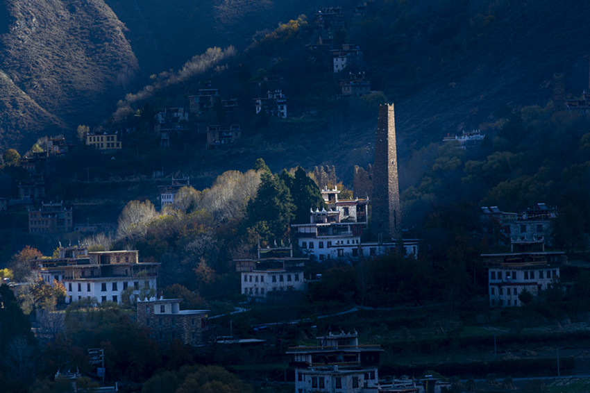 如果說衣著艷麗、高挑健美、輪廓分明、深情嫵媚的丹巴美女,實現(xiàn)了所有女孩子心中的浪漫的公主夢,少女心,是丹巴浪漫唯美氣息代表的話。那么筆直挺拔、棱角分明、飽經(jīng)風雨、巍然屹立的碉樓,則是丹巴陽剛之美的代表。