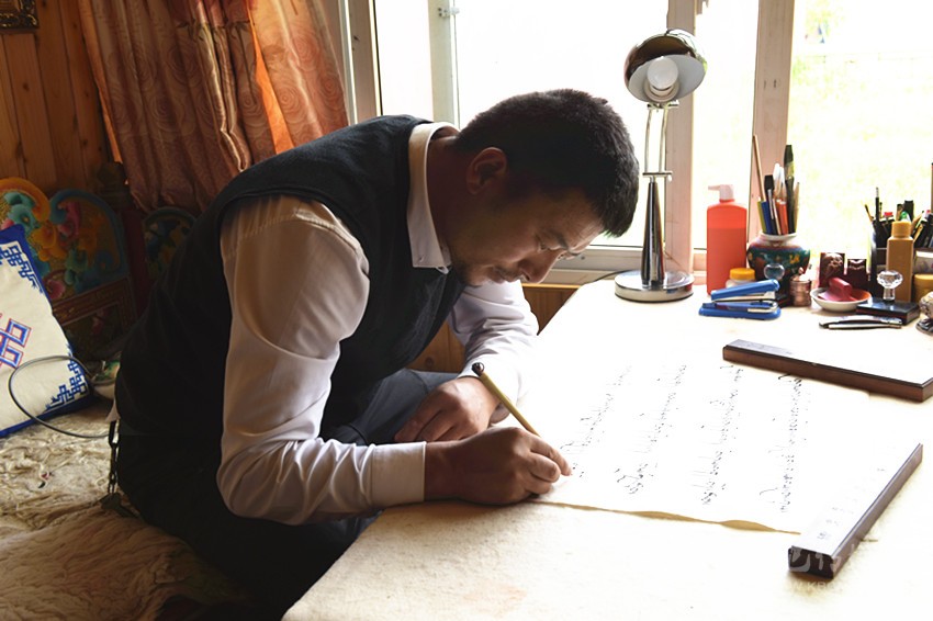 “德珍書法原本就是集歷史上藏文書法大師作品精華而成。”這些年,昂旺曲批呆在理塘,潛心研究當(dāng)代各個藏文流派名家的書法作品,同時和內(nèi)地的漢字書法名家保持著聯(lián)系。他希望自己沿著“集眾家所長,兼收并蓄”的精神傳統(tǒng),把“德珍派”藏文書法的傳統(tǒng)發(fā)揚(yáng)廣大,同時能有所創(chuàng)新。