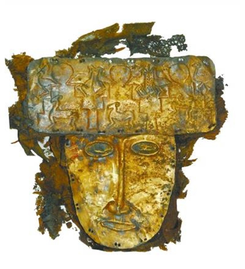 曲踏墓地出土的黃金面具。 李林輝 攝