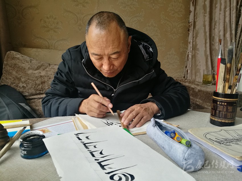 一揮而就的瞬間,“扎西德勒”的藏文立體書法落在宣紙上,等候墨跡干掉的片刻,仁真丹松拿起《藏文文法綱要》,津津有味地讀了起來(lái)。