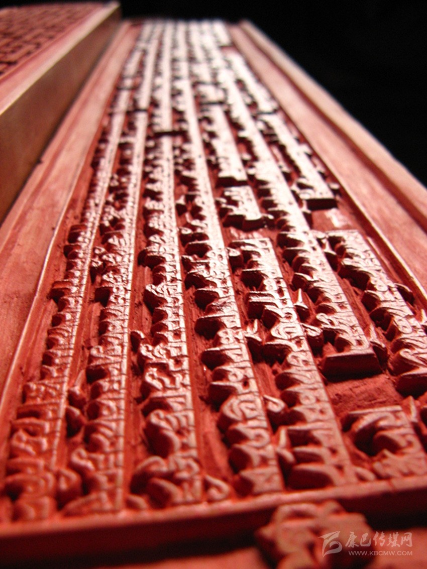 公元1730年2月3日,正式在倫珠頂開始進(jìn)行校對和雕刻工作。為了提高印版的質(zhì)量,土司規(guī)定實行三級審校制度,即書法家們負(fù)責(zé)對寫好的版文進(jìn)行兩校,以便及時修改錯漏。然后經(jīng)編審師們復(fù)審和終審后,方可交刻工雕刻??掏旰螅帉弾焸冊谇鍢由线€要進(jìn)行三校。版面改動較多的進(jìn)行重刻,改動較少的進(jìn)行補(bǔ)刻。規(guī)定的校次不準(zhǔn)任意減少或改動。雕刻工作由噶瑪班珠和次白總負(fù)責(zé)。經(jīng)過60多名書寫員、10名編審師、400余名刻工以及100多名雜工的艱苦勞動,浩繁的《甘珠爾》刻版工程于在公元1734年完成。印版所用經(jīng)費(fèi),折成茶塊共計7622包(每包約20公斤)。