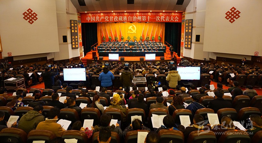 中國共產(chǎn)黨甘孜藏族自治州第十次代表大會在康定劇場隆重開幕。本網(wǎng)記者 王明陽 張兵 攝
