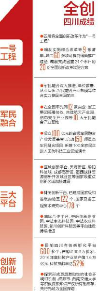 新變化源自新機遇。2015年8月,四川等8個區(qū)域被確定為國家系統(tǒng)推進全面創(chuàng)新改革試驗區(qū)。全面創(chuàng)新改革試驗,是改革開放近40年來中央交給四川最重要的改革任務(wù),作為引領(lǐng)發(fā)展的“一號工程”,一年多來,四川已在軍民融合、科技成果轉(zhuǎn)化、人才培養(yǎng)、金融服務(wù)等多個領(lǐng)域大膽創(chuàng)新,亮點頻現(xiàn)。