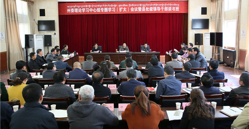 本網(wǎng)訊(記者 楊杰 文/圖)為進(jìn)一步學(xué)習(xí)好 、宣傳好、貫徹好黨的十九大精神和習(xí)近平總書記來川視察重要講話精神,把全州各級黨員領(lǐng)導(dǎo)干部的思想和行動(dòng)統(tǒng)一到講話精神上來,把力量和智慧凝聚到習(xí)近平總書記提出的目標(biāo)要求上來,4月4日,州委理論學(xué)習(xí)中心組舉行專題學(xué)習(xí)(擴(kuò)大)會(huì)暨縣級主要領(lǐng)導(dǎo)干部讀書班。州委書記劉成鳴主持學(xué)習(xí)會(huì)并講話。州人大常委會(huì)主任李康參加學(xué)習(xí)。