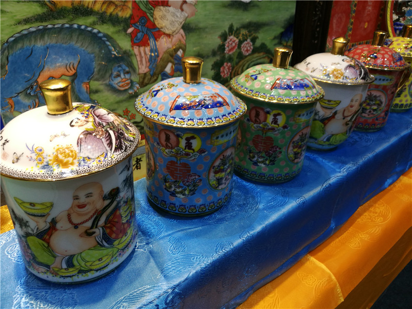 付國華在介紹時說,“高溫粉彩”必須以線條繪畫,將陶瓷唐卡染上顏料燒制,燒制完后再上色再燒制,然后再上色再燒制,在高溫1200度反復(fù)燒制五六次,才能達到一幅比較完整的唐卡。下步公司將黑陶作為新的挖掘目標(biāo),相信在馮建華老師的指導(dǎo)下,我州黑陶高溫粉彩陶瓷藝術(shù)將呈現(xiàn)出新亮點,“高溫粉彩”陶瓷藝術(shù)將在廣闊的市場中,為喜愛這一藝術(shù)品的消費者提供需求。