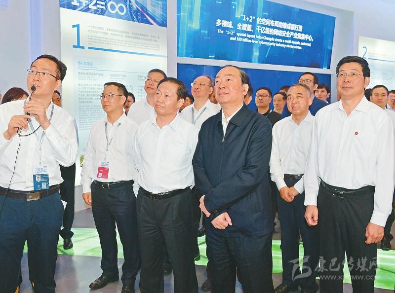 9月19日,中共中央政治局委員、中宣部部長(zhǎng)黃坤明等參觀網(wǎng)絡(luò)安全博覽會(huì)。 川報(bào)記者 歐陽(yáng)杰 攝