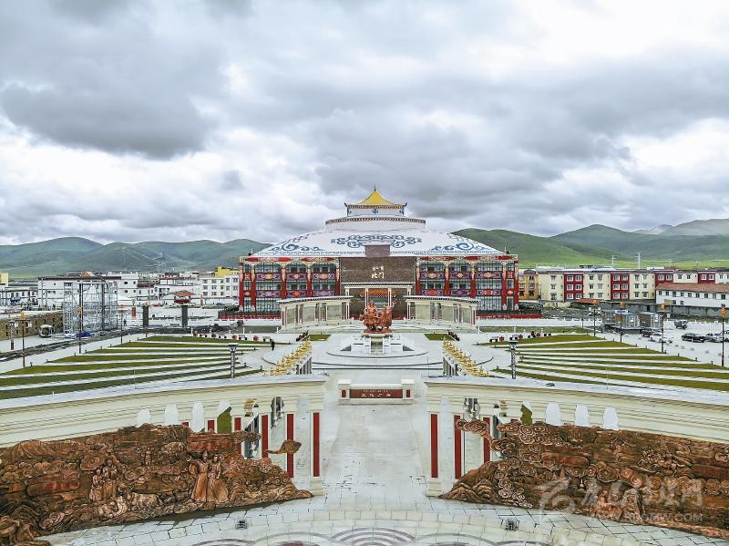 活動中心最“惹眼”的建筑,是一棟外形神似牧區(qū)帳篷的三層主體建筑。主體建筑的頂部,借鑒了石渠縣色須寺的外形設計,建筑外部的壁畫均為當?shù)厥止に嚾擞H手繪制?;顒又行牡膹V場上,以微縮的形式展現(xiàn)石渠縣最具代表性的景點,如石經(jīng)城、石經(jīng)墻等。