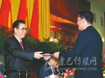 1998年5月5日,全國人民代表大會澳門特別行政區(qū)籌備委員會在北京人民大會堂宣告成立并舉行第一次全體會議。這是李鵬同志為籌備委員會副主任委員何厚鏵頒發(fā)任命書。 新華社記者 鞠鵬 攝