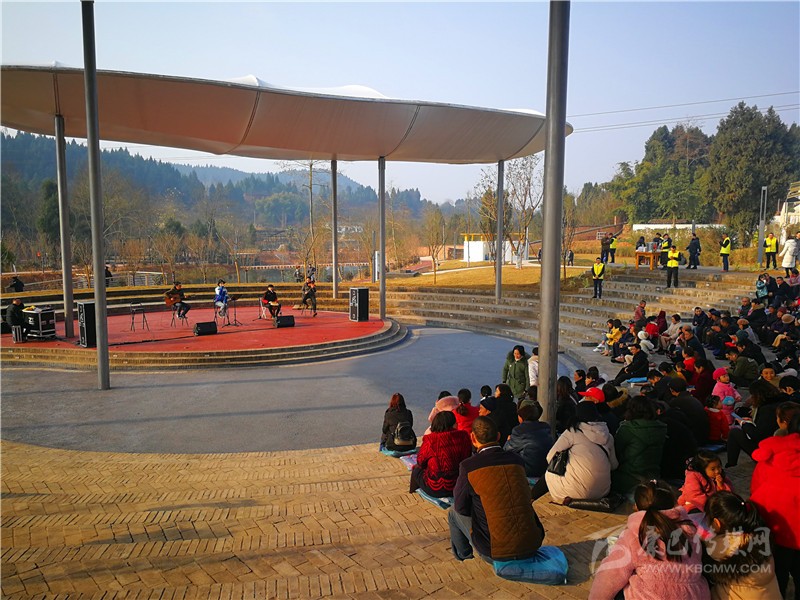 “遠(yuǎn)處的東山俯望著平靜的旌湖水,它流淌著,帶走了年輕的歲月……這就是我的家德陽(yáng),遠(yuǎn)方的人回來(lái)吧!”1月19日上午,在旌陽(yáng)區(qū)東湖街道高槐村里傳來(lái)動(dòng)聽(tīng)的民謠。遠(yuǎn)遠(yuǎn)看去,村民們圍坐在“田野秀場(chǎng)”正聽(tīng)著樂(lè)隊(duì)歌唱,不時(shí)還跟著音樂(lè)打著拍子。