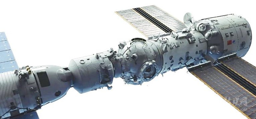 ●飛船成功對(duì)接天和核心艙前向端口,與此前已對(duì)接的天舟二號(hào)貨運(yùn)飛船一起構(gòu)成三艙(船)組合體