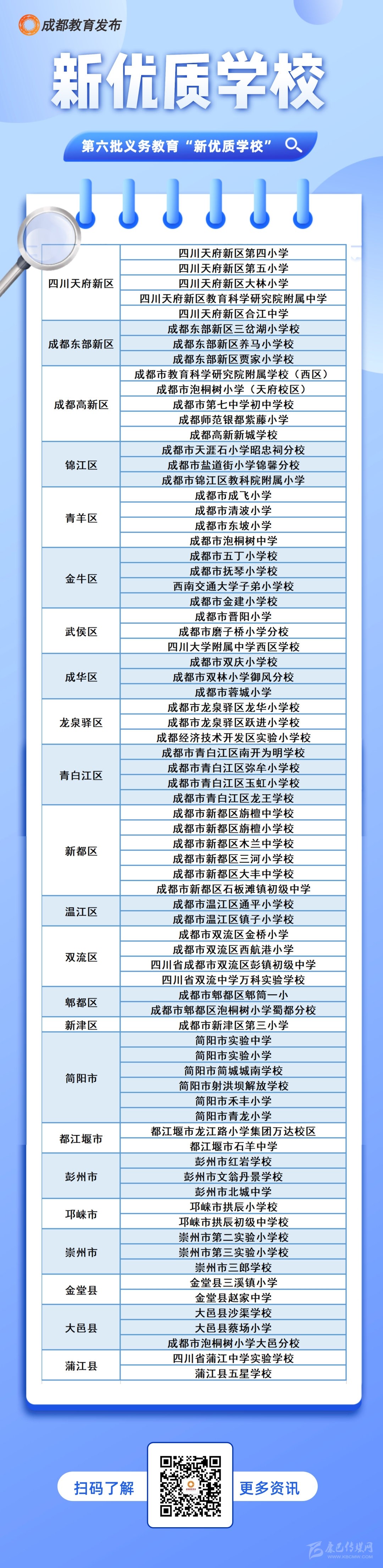 記者從成都市教育局獲悉,1月13日,成都市教育局公布全市第六批義務(wù)教育“新優(yōu)質(zhì)學(xué)?!泵麊危啥计咧谐踔袑W(xué)校等75所學(xué)校被認(rèn)定為全市義務(wù)教育“新優(yōu)質(zhì)學(xué)?!保麊胃胶螅?。