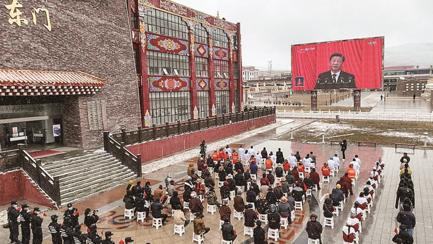 “要增強全黨全國各族人民的志氣、骨氣、底氣,不信邪、不怕鬼、不怕壓,知難而進(jìn)、迎難而上,統(tǒng)籌發(fā)展和安全,全力戰(zhàn)勝前進(jìn)道路上各種困難和挑戰(zhàn),依靠頑強斗爭打開事業(yè)發(fā)展新天地?!甭牭綀蟾嬷械倪@句話時,州政府辦干部澤仁拉姆感到特別提氣。