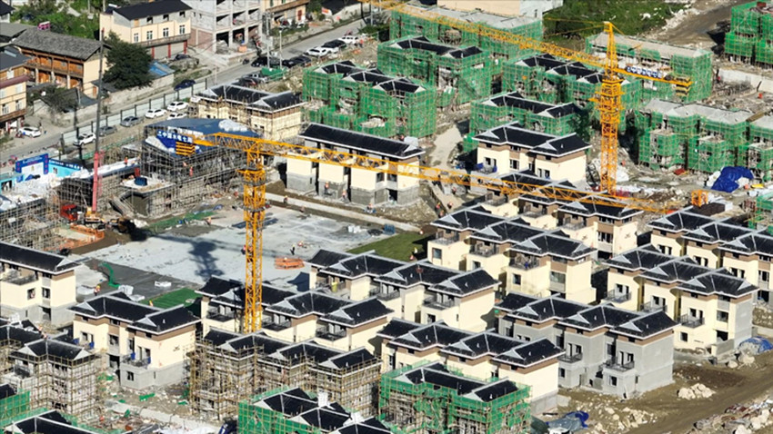 圖為海螺溝災(zāi)后恢復(fù)重建統(tǒng)規(guī)統(tǒng)建安置點(diǎn)建設(shè)現(xiàn)場(chǎng)。 記者 肖宵 攝