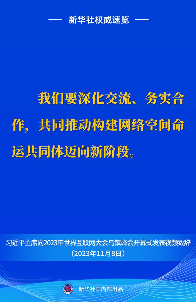 新華社權(quán)威速覽丨習(xí)近平主席向2023年世界互聯(lián)網(wǎng)大會(huì)烏鎮(zhèn)峰會(huì)開幕式視頻致辭金句