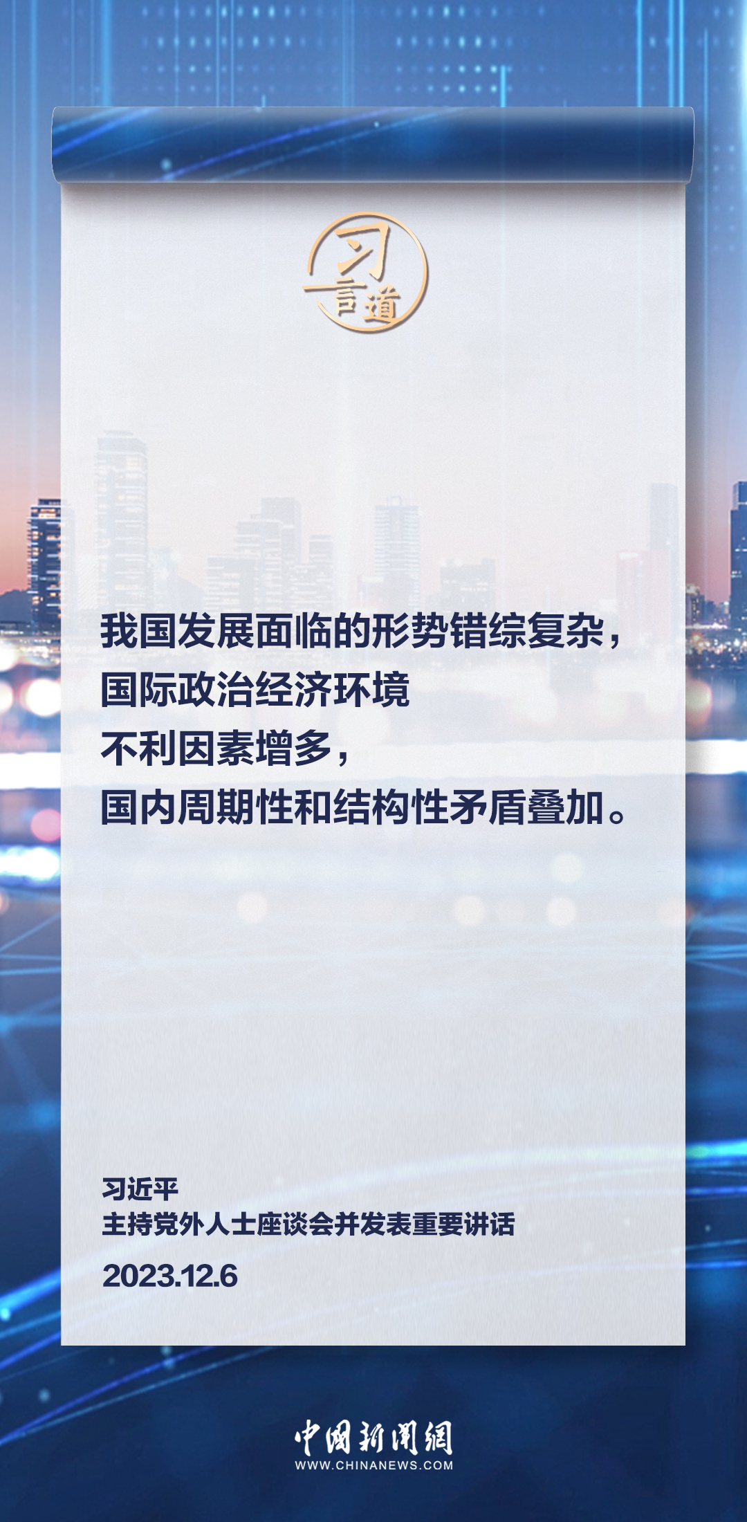 12月6日,中共中央在中南海召開黨外人士座談會,就今年經(jīng)濟形勢和明年經(jīng)濟工作聽取各民主黨派中央、全國工商聯(lián)負責人和無黨派人士代表的意見和建議。中共中央總書記習近平主持座談會并發(fā)表重要講話。