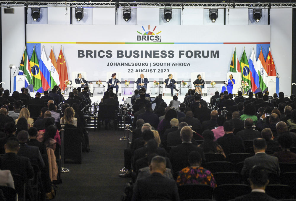 這是2023年8月22日在南非約翰內斯堡拍攝的金磚國家工商論壇現場。新華社記者 李亞輝 攝