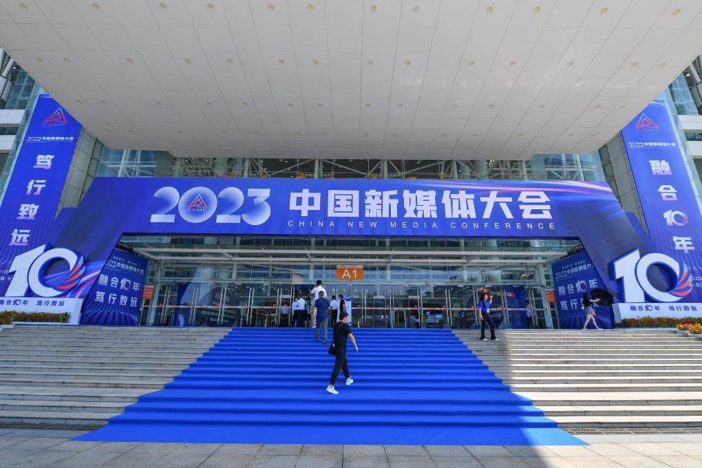 這是2023年7月12日拍攝的2023中國(guó)新媒體大會(huì)中國(guó)新媒體技術(shù)展外景。新華社記者 陳澤國(guó) 攝