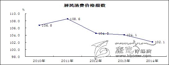 物價運(yùn)行基本穩(wěn)定,漲幅高于全國全省。2014年12月CPI同比上漲1.7%,全年消費價格總水平比上年上漲2.1%,漲幅為7年來新低,比全國高0.1個百分點、比全省高0.5個百分點。