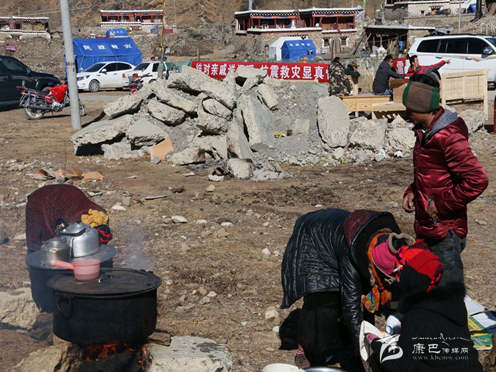 走進(jìn)八美鎮(zhèn)重災(zāi)區(qū)中古村災(zāi)民安置區(qū),第一眼就能看見戴著紅袖章的兩個(gè)村民正圍著兩個(gè)大灶轉(zhuǎn)來轉(zhuǎn)去忙個(gè)不停。村民巴青老人說:“災(zāi)后,我們隊(duì)的村民都集中安置在這里,為方便受災(zāi)群眾和前來幫忙的干部都能喝上一口熱茶,我們幾個(gè)村民臨時(shí)搭建了兩個(gè)‘三鍋莊’灶臺,用來燒清茶和開水,因?yàn)槲覀冎烙行└刹苛?xí)慣喝白開水,就特意準(zhǔn)備了一個(gè)燒白開水的鍋。”他指著正在搶修房屋的黨員服務(wù)隊(duì)說:“地震發(fā)生到現(xiàn)在,很多領(lǐng)導(dǎo)來看望我們,很多干部到村上幫助搶修房屋、運(yùn)送物資,這么冷的天,他們一直不停地在幫我們做事情,很辛苦!我們不能光等著干部們來給我們做事情,我今年68歲,雖然做不了大的事,但是給他們燒茶遞水是沒有問題的。”
