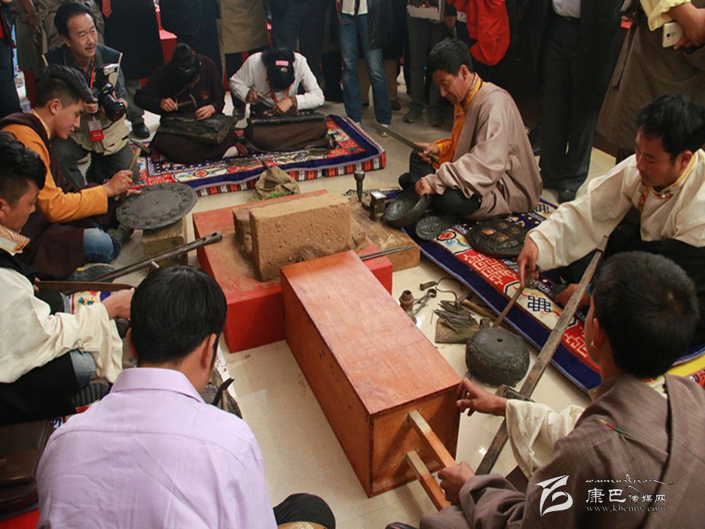 扎西是河坡藏傳手工技藝的代表性人物,7歲跟師學(xué)藝,13歲開始開辦手工作坊,從事這項(xiàng)手工工藝已經(jīng)20多年了。說話間,扎西自豪地向大家介紹,今天,在展廳展示手工技藝的人都是他的學(xué)生。在家鄉(xiāng)河坡鄉(xiāng)德來村幾乎家家戶戶都能打制藏刀和其他制作精美的佛具。