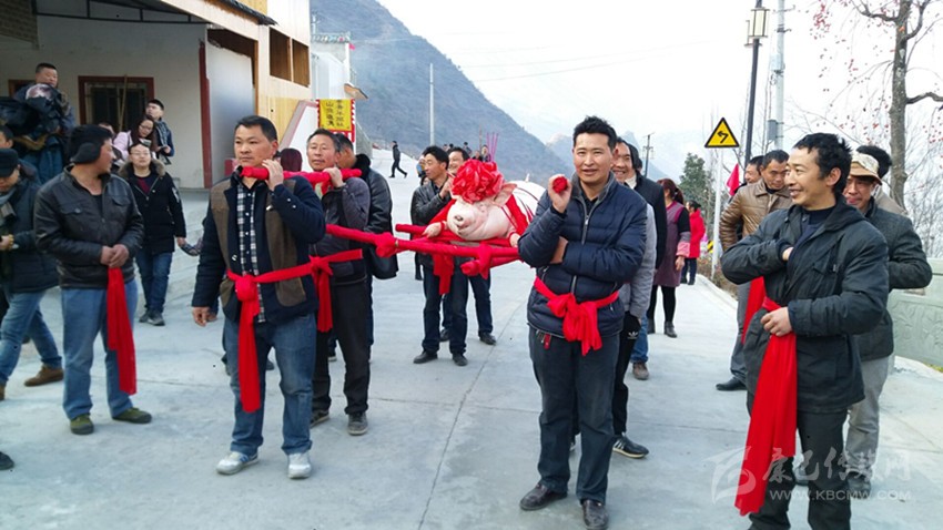 新年的第一縷陽光灑滿瀘定縣興隆鎮(zhèn)和平村,寂靜的山村在暖意融融的陽光中蘇醒過來,隨著春節(jié)的臨近,辛苦勞作了一年的村民,家家戶戶開始?xì)⒛曦i迎新年。年豬文化已成為當(dāng)?shù)貍鞒芯眠h(yuǎn)的民俗文化。為適應(yīng)全域旅游的需要,興隆鎮(zhèn)和平村已經(jīng)連續(xù)幾年舉辦年豬文化節(jié),鄉(xiāng)村旅游不斷升溫,村民告訴筆者,和平村殺年豬比過春節(jié)還熱鬧,而且殺年豬的過程非常講究,選日子、焚香、祈福一樣都不能少。新年第一天,和平村年豬文化節(jié)盛大開幕,年豬味兒,新年味兒十足。