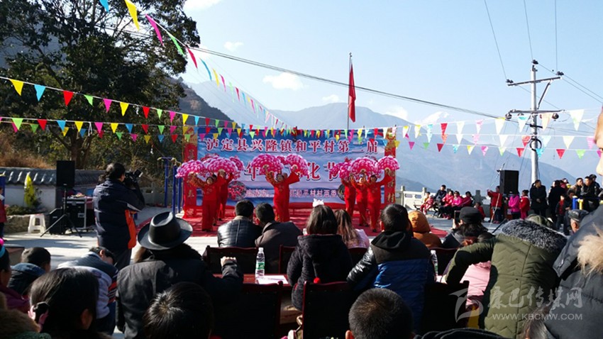 鼓聲喧天、歌聲飛揚,現(xiàn)場到處洋溢著濃濃的節(jié)日氛圍。浩浩蕩蕩的隊伍也引來了不少村民和游客們的關(guān)注。特別是隊伍中幾個唱山歌的村民獨特的腔調(diào)和唱詞盡展和平村山歌的特色。和平村每到冬月以后,村民家家戶戶便開始?xì)⒛曦i,相互串門,吃年豬宴,這一習(xí)俗已傳承百年,在和平村村民的心中,年豬文化節(jié)是一個慶祝豐收的節(jié)日。上午十點半,游行隊伍來到了和平村村級活動室,“豬王”被放在了舞臺中間,焚香祈福后,當(dāng)?shù)卮迕裼幂d歌載舞的方式共慶這一節(jié)日的成功舉辦。村民們自編自演的舞蹈《祖國您好》《喜慶臨門》《紅梅贊》,現(xiàn)場表演唱山歌打草鞋,每一支舞,每一首歌都傳遞著村民們對黨對祖國對新生活的無限熱愛。