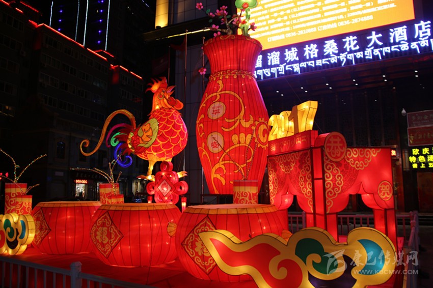據(jù)該公司負(fù)責(zé)本次花燈設(shè)計(jì)的設(shè)計(jì)師鄭才學(xué)介紹,本次花燈每組主題不同,以全新的設(shè)計(jì)理念、歡樂祥和的氛圍、獨(dú)具特色的造型,向世人展現(xiàn)獨(dú)特的甘孜魅力。向陽橋頭的花燈主題為新春快樂,整個(gè)花燈呈火紅色,巨型“春”字搭配藏族繪畫中最常見但寓意深刻的吉祥八寶圖案,以及舞獅子、大紅燈籠、中國結(jié)等融為一體,為來到康定的客人第一時(shí)間送上熱情的新春問候;情歌廣場的花燈主題為鼓舞康定,以被譽(yù)為中國民間藝術(shù)瑰寶的大紅鼓作為人民歡慶盛世、贊美和諧的情感載體,充滿雄渾之氣,寓意著我州在時(shí)代發(fā)展的浪潮中擊鼓奮進(jìn)、得勝而鳴;情歌大廈門口的花燈主題為金雞送平安,以中國傳統(tǒng)生肖年文化為背景,配合中國結(jié)和爆竹,喜慶而不失莊重,寓意著為全州人民送去平安吉祥;將軍橋頭的花燈主題為童子賀歲,火紅的燈籠搭配喜慶的福娃及爆竹,為全州各族人民送上新年的祝福;17隊(duì)三岔路口的花燈主題為和諧康定,巨大的荷花藝術(shù)造型結(jié)合動(dòng)感的LED光源,造型高低錯(cuò)落,寓意和諧、和美,體現(xiàn)在州委、州政府的堅(jiān)強(qiáng)領(lǐng)導(dǎo)下,人民安居樂業(yè),和諧美滿。最霸氣、最吸引人的當(dāng)屬情歌公園主題為吉祥多福的花燈,整個(gè)花燈由六個(gè)直徑一米半左右的福字燈籠,環(huán)繞一個(gè)直徑達(dá)3米左右的福字燈籠組合而成,主燈籠的燈柱高大而厚重,環(huán)繞的六個(gè)燈柱上配有吉祥八寶圖案,寓意著全州物產(chǎn)豐富,人民的生活紅紅火火,一年更比一年好。