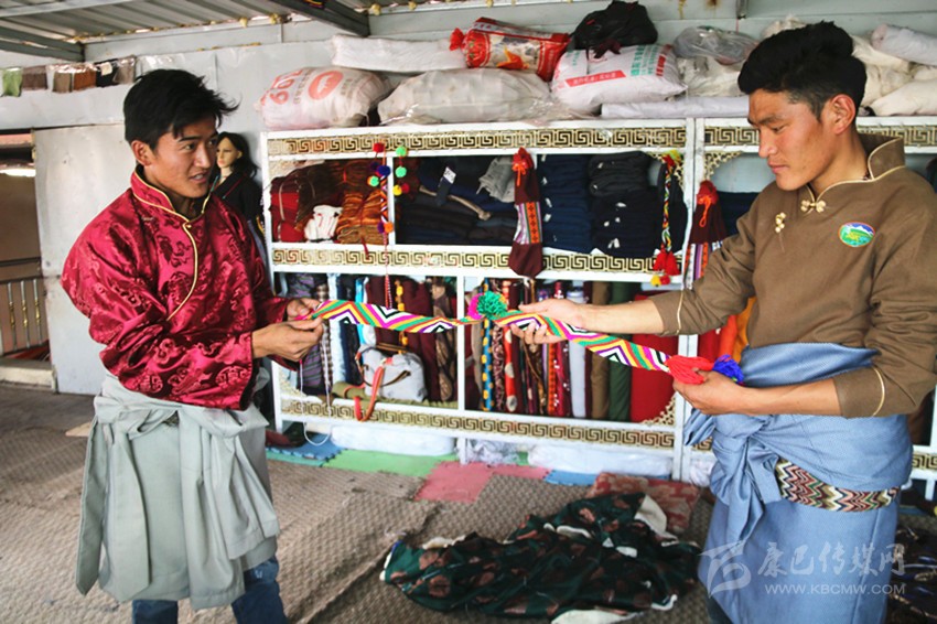 安孜鄉(xiāng)作為白玉縣海拔較高的鄉(xiāng)鎮(zhèn)之一,夏天是十分短暫的,連日來(lái)的晴好天氣,也透著絲絲寒氣。牧民阿剛想要量身定做一套過(guò)冬的藏裝,8月26日,他來(lái)到白玉縣阿察鎮(zhèn),一家民族服飾商貿(mào)公司吸引了他的目光?!拔覀冞@里的服裝面料是本地羊毛和從浙江進(jìn)的上等面料,做工考究,很多工序是純手工制作,服裝樣式你可以根據(jù)你的喜好指定,我們包你滿(mǎn)意?!钡陠T仁真熱情地介紹。聽(tīng)了仁真的介紹,阿剛用手捻了一下服裝用料的質(zhì)地,看到印有“祥陽(yáng)措”商標(biāo)的精美包裝袋,商店里擺放的五彩斑斕、高端大氣的藏式男女服裝,他有些動(dòng)心了?!吧a(chǎn)這些服裝的都是我們納塔鄉(xiāng)的牧民,你可以考察我們的服裝用料、生產(chǎn)流程,再作打算?!比收鏌崆檠笠绲亟榻B說(shuō)。