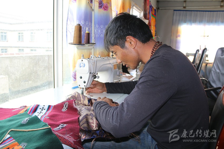 在白玉縣阿察鎮(zhèn)街上,有一處很不起眼的服裝加工店,店里擺放著各色質(zhì)地考究的服裝面料和時(shí)尚的藏族服裝。白玉縣祥陽(yáng)措青年悅民族服飾商貿(mào)有限責(zé)任公司經(jīng)理在熱是納塔鄉(xiāng)納塔村的牧民,他穿著自己生產(chǎn)的藏裝,在工作室里,看到牧民或操作縫紉機(jī)、或用手工精心制作藏裝,他露出了開(kāi)心的笑容。他一再叮囑員工,一定要仔細(xì),要拿出最好的本事,用一流的技藝,不僅要讓顧客滿(mǎn)意,還要打出公司的服裝品牌,質(zhì)量是公司和員工的立身之本。