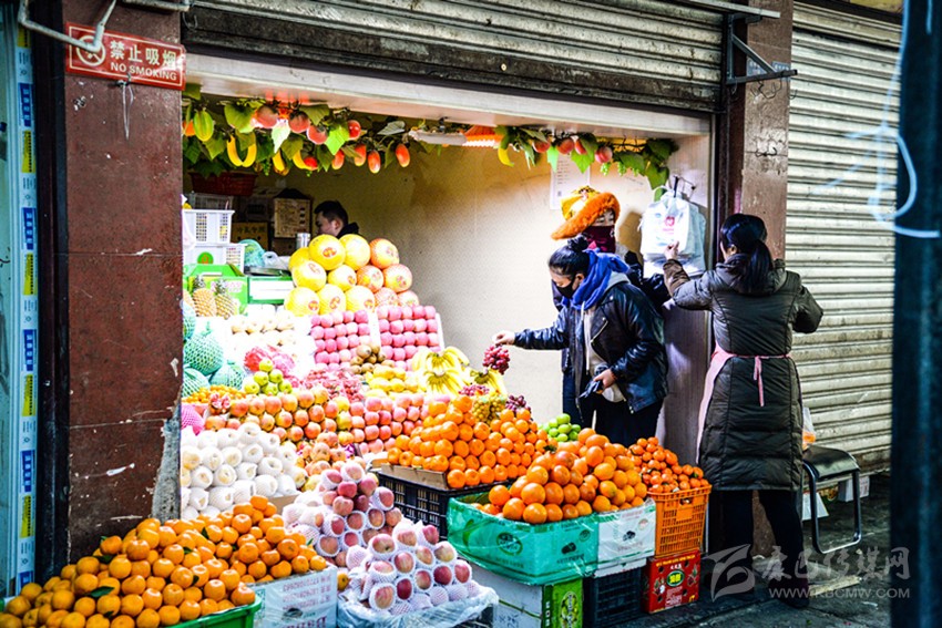 超市內(nèi)各類(lèi)水果琳瑯滿(mǎn)目。