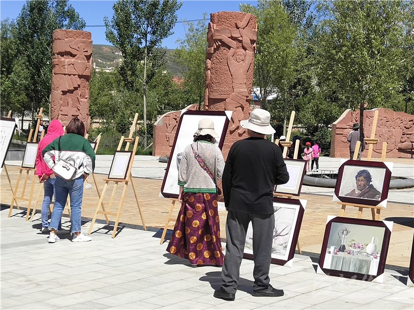 文藝展得到了廣大藝術愛好者的積極響應、參與和支持,共征集到精美作品189件展出,其中書法作品60件、繪畫作品69件、唐卡作品60件。作品內容廣泛、立意新穎、主題突出,既有藝術性又有紀實性,富有感染力和表現(xiàn)力。